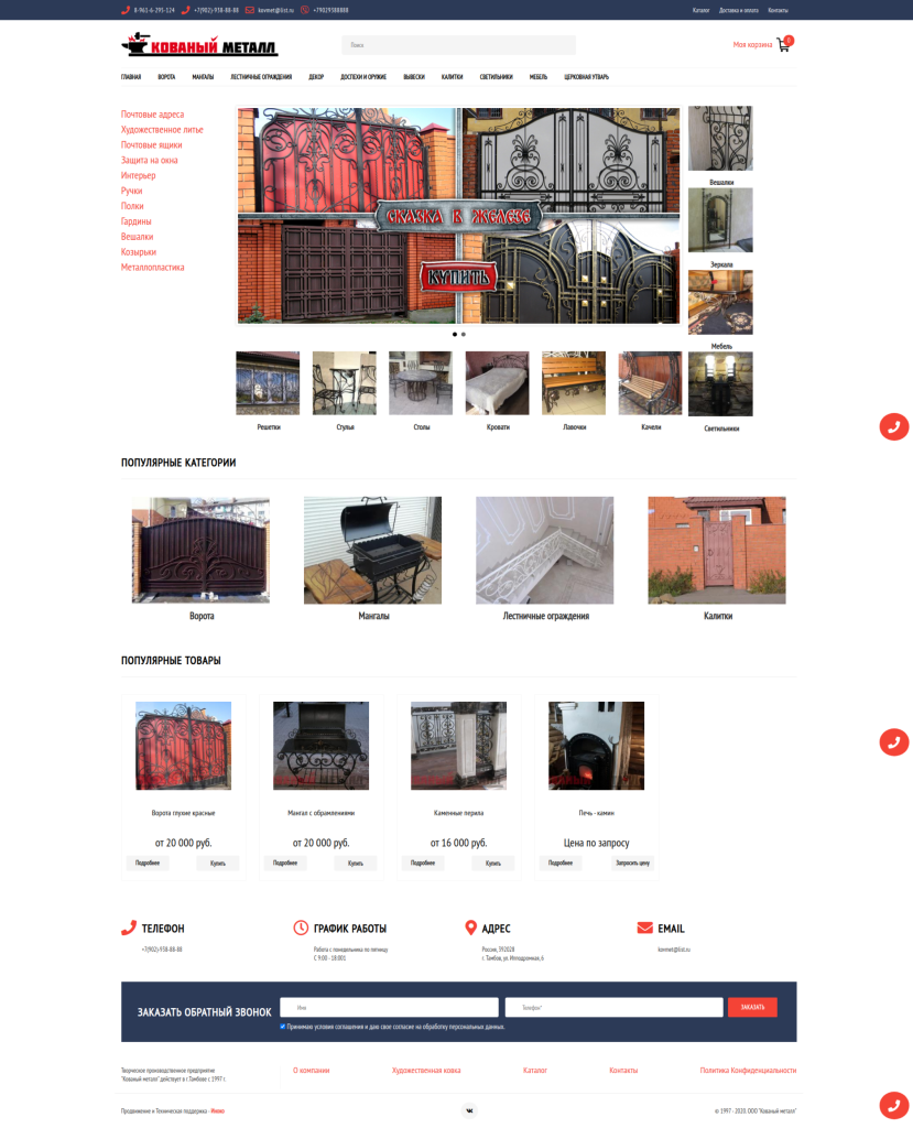 Для сайта разработан оригинальный дизайн, который сочетает в себе эстетику и функциональность. Особое внимание было уделено презентации продукции, чтобы подчеркнуть качество и изысканность кованых изделий.
