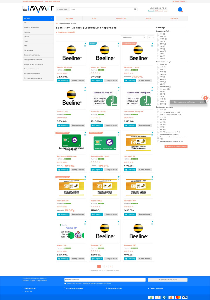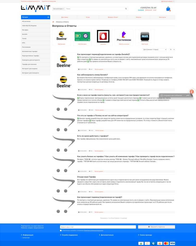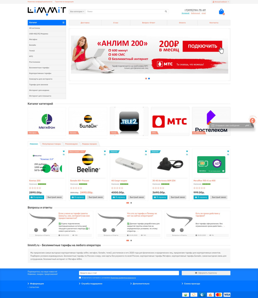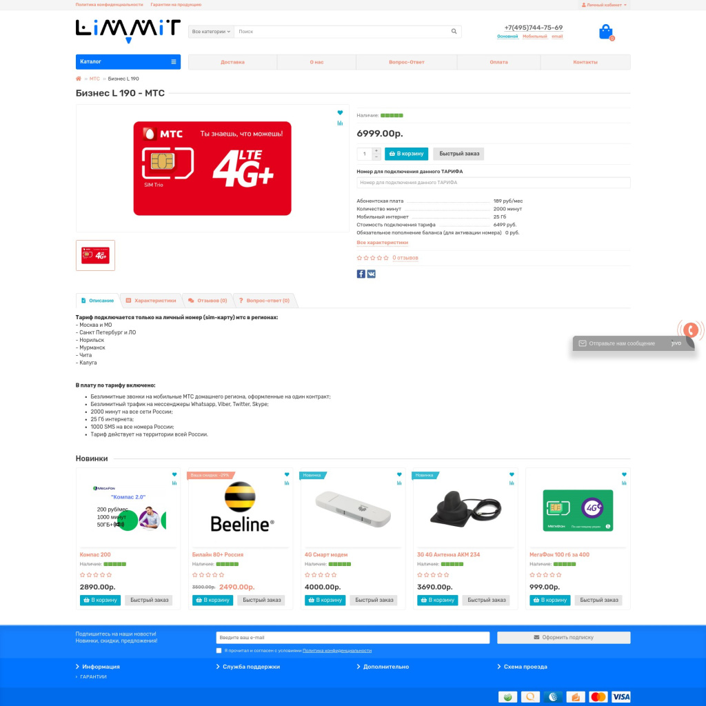 Проект limmit.ru разработан на платформе ocStore 3.0.2.0. Мы обеспечили клиенту полный цикл работ "под ключ", включая настройку дизайна на основе шаблона, перенос контента и оптимизацию для успешного функционирования интернет-магазина.