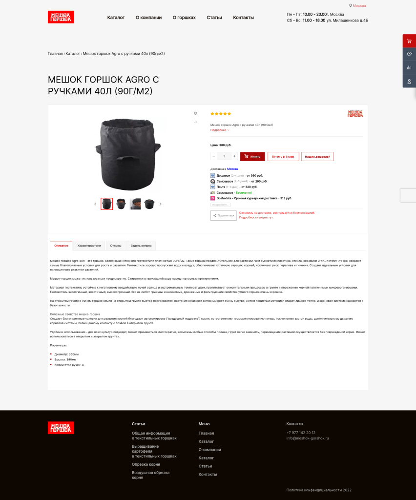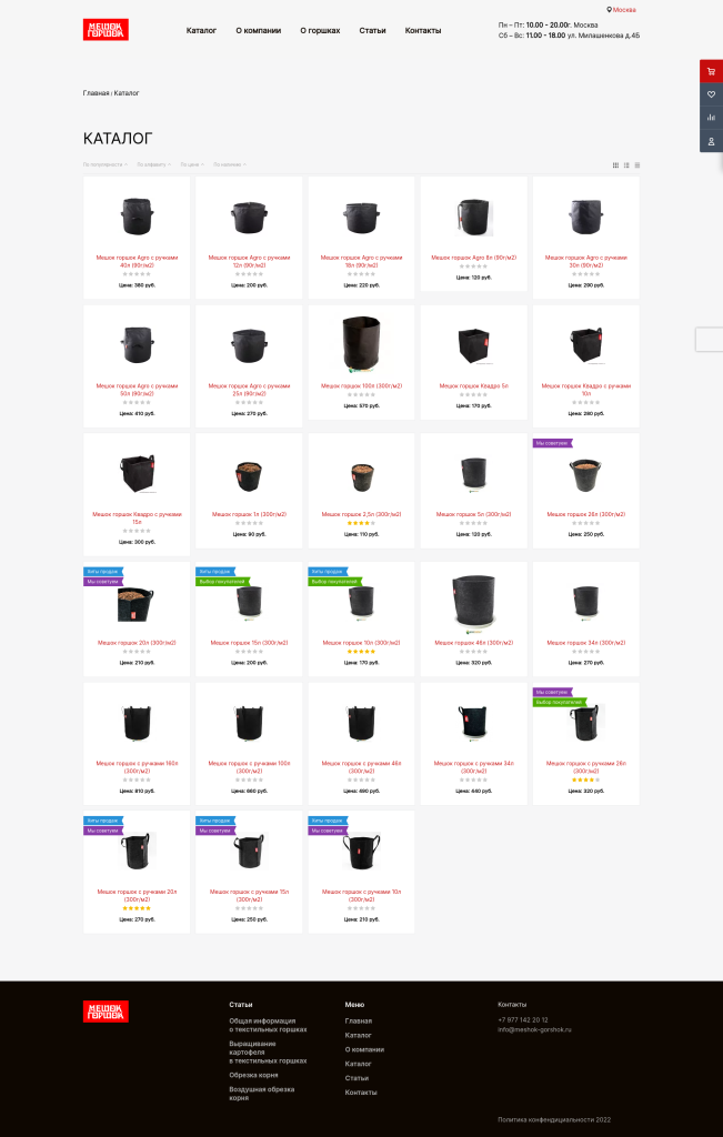 Перенос сайта meshok-gorshok.ru с HTML на 1С-Битрикс стал шагом к современному, функциональному и управляемому ресурсу. Наш профессионализм и внимательность к деталям позволили достичь высоких стандартов качества разработки.