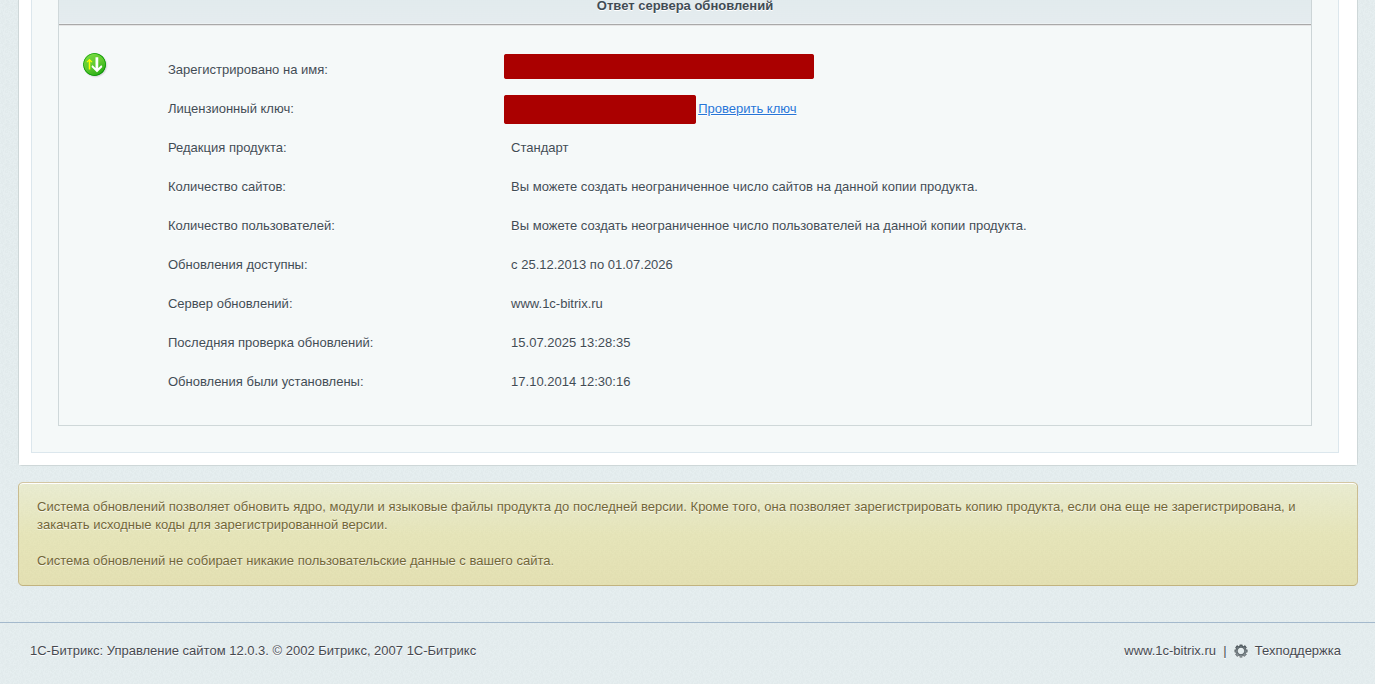 - Смена версии PHP на 7.1. Были внесены правки в .settings.php и dbconn.php — изменён тип подключения к базе данных с устаревшего mysql на mysqli.